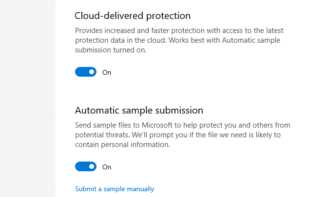 You should also turn on Automatic sample submission to submit suspicious files to Microsoft for further analysis. This may sound like a privacy risk, but it will only upload program files automatically. If a file could contain personal information, you’ll be asked for permission before it’s sent.