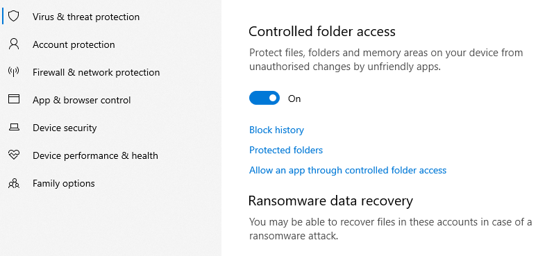 It’s strange then that Defender’s ransomware protection is switched off by default, presumably to stop legitimate programs from being blocked. Fortunately, the feature is easy to enable.