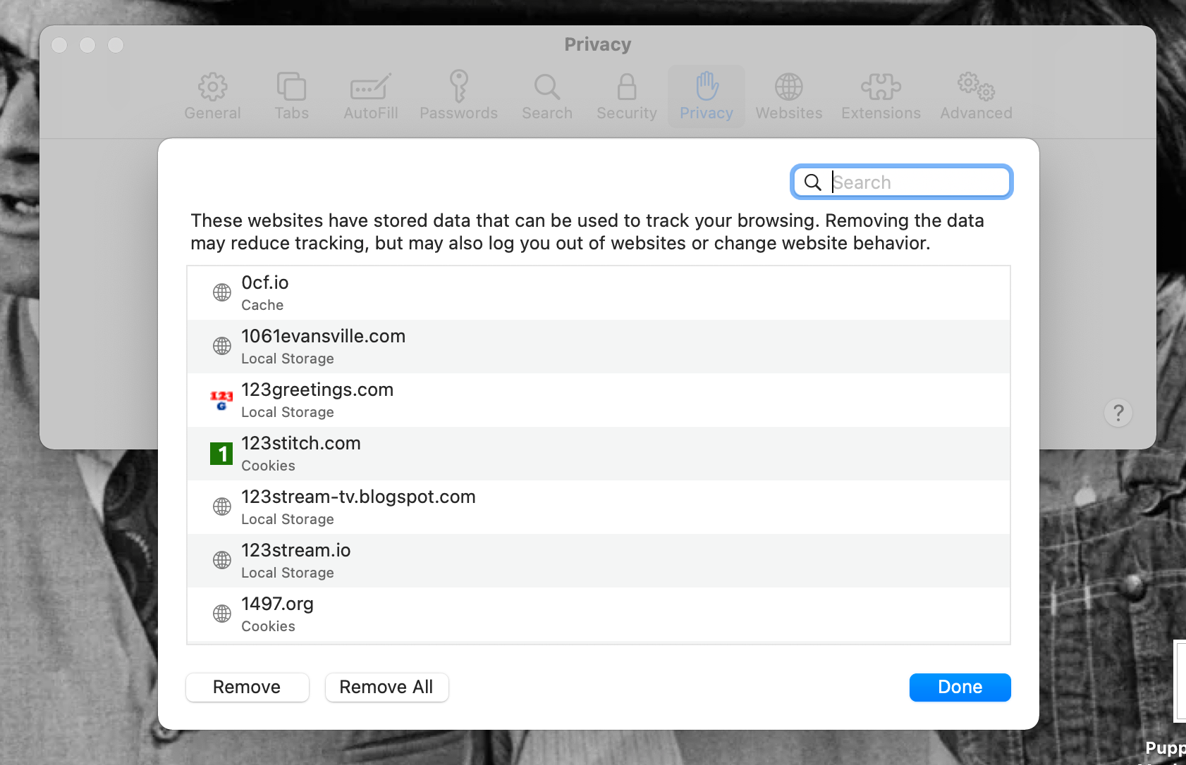 To quickly delete all of your cookies at once, hit the Remove All button. We’d personally recommend this option for a quick cleanup. Once it’s done, hit Done to leave the window and close Preferences.